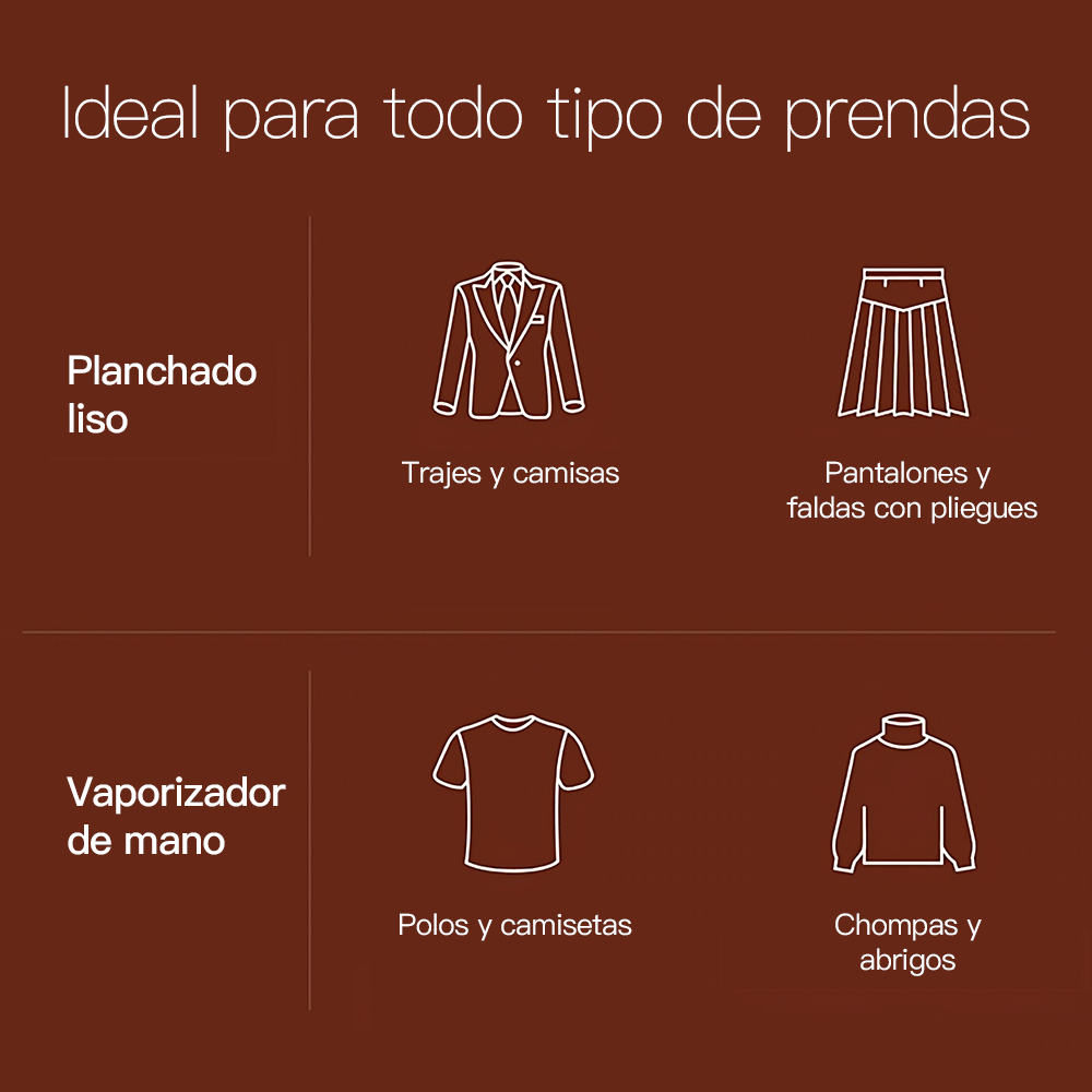 • Versatilidad total: úsala como plancha o vaporizador según el tipo de prenda.